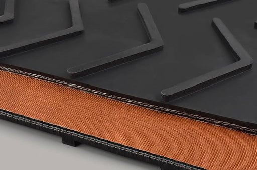 Conveyor Parts Monster3 Ply 330 1/8in x Bare Cleat Top MOR. International designation: Designed to prevent or reduce slideback on steep inclines, chevron belting increas...
