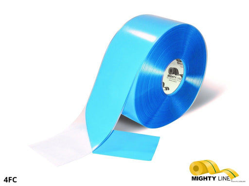 DesconocidoWhite and Blue Mighty Line Floor Tape is 4" wide by 100 feet long. This tape is 50 MIL thick PVC material with a peel and stick, adhesive backing. ...