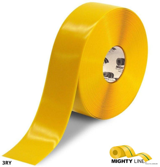 DesconocidoYellow Mighty Line Floor Tape is 3" wide by 100 feet long. This tape is 50 MIL thick PVC material with a peel and stick, adhesive backing. This tap...